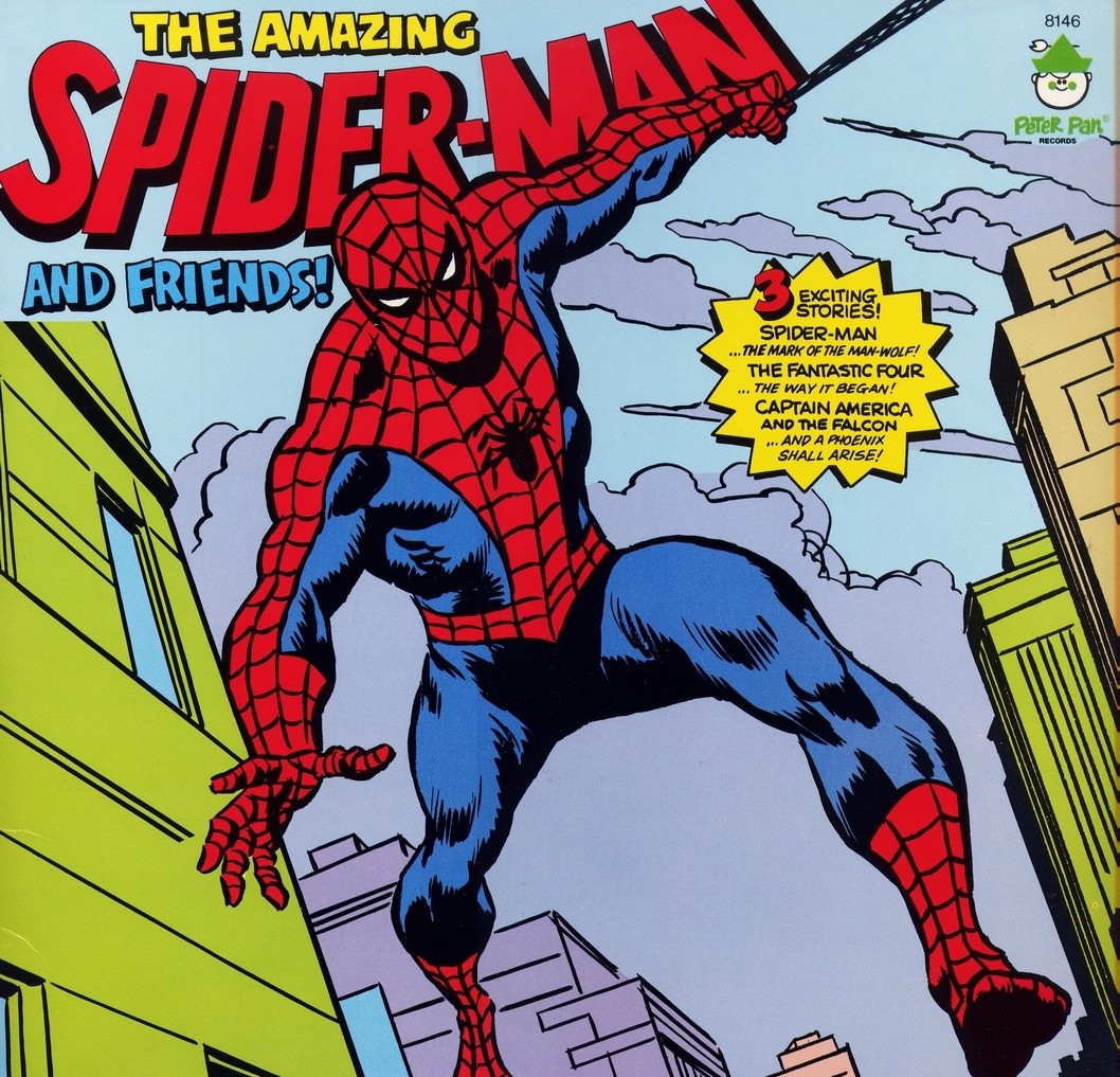 My brother has had this version of the Amazing Spider-Man and Friends (8146) record for quite some time. The album is a mono re-issue of the original album with a different cover art and the record does not include The Incredible Hulk At Bay. If you want a closer look, click the image and you can see a high quality scan of the cover in a new window. Thanks, Andrew.